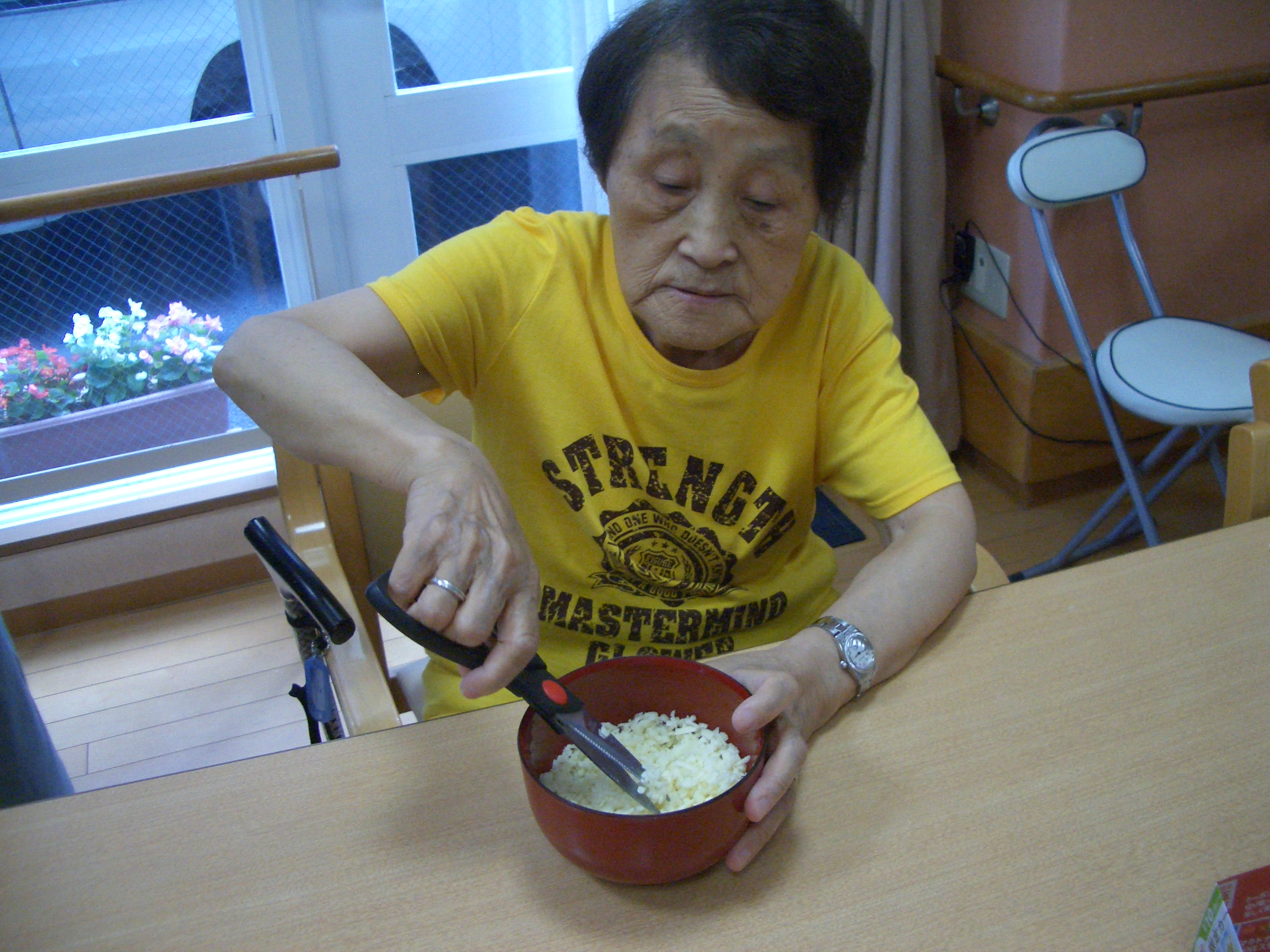 今週はおやつ週間です。先日屋上で収穫したじゃが芋で「じゃが芋餅」を作っています。